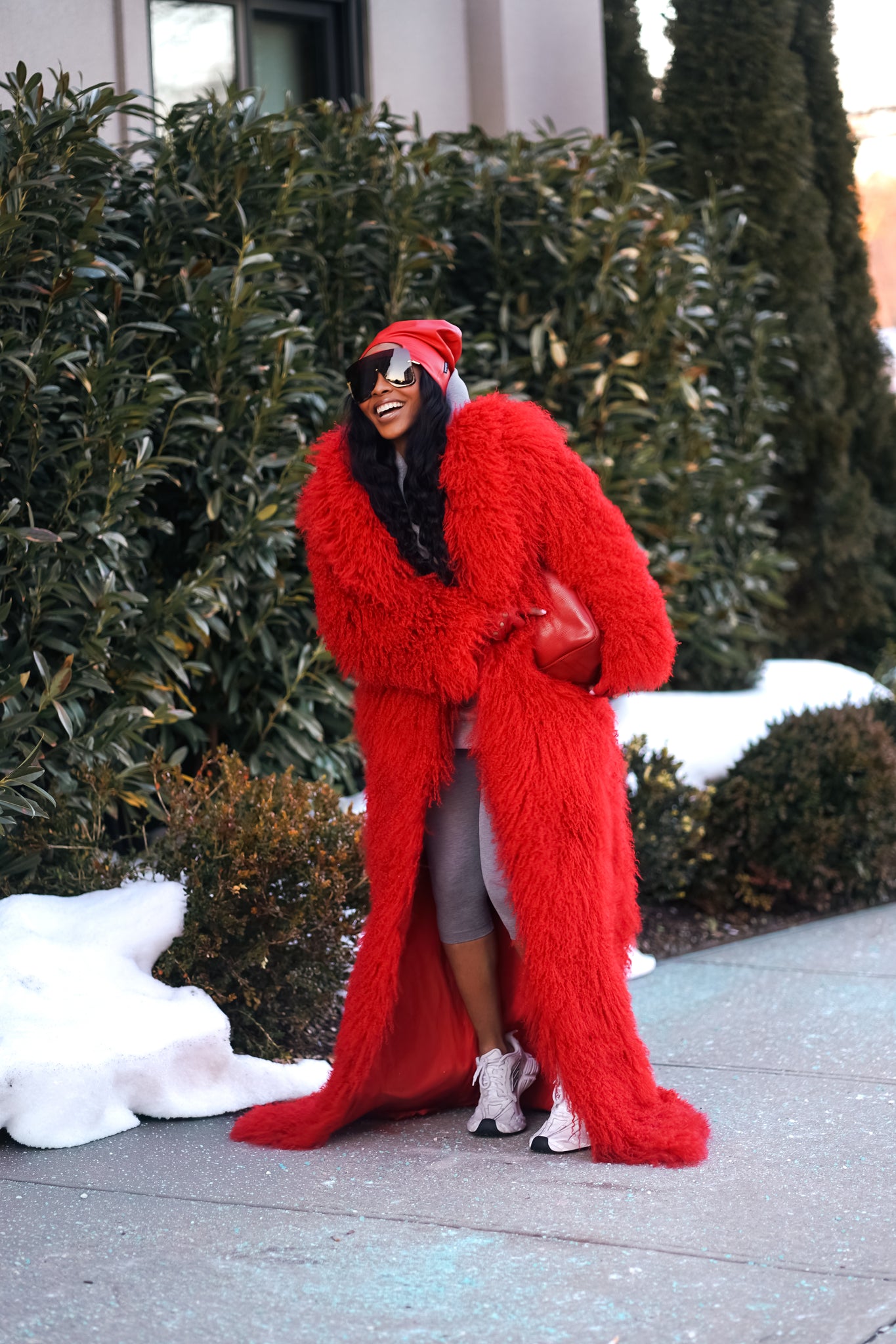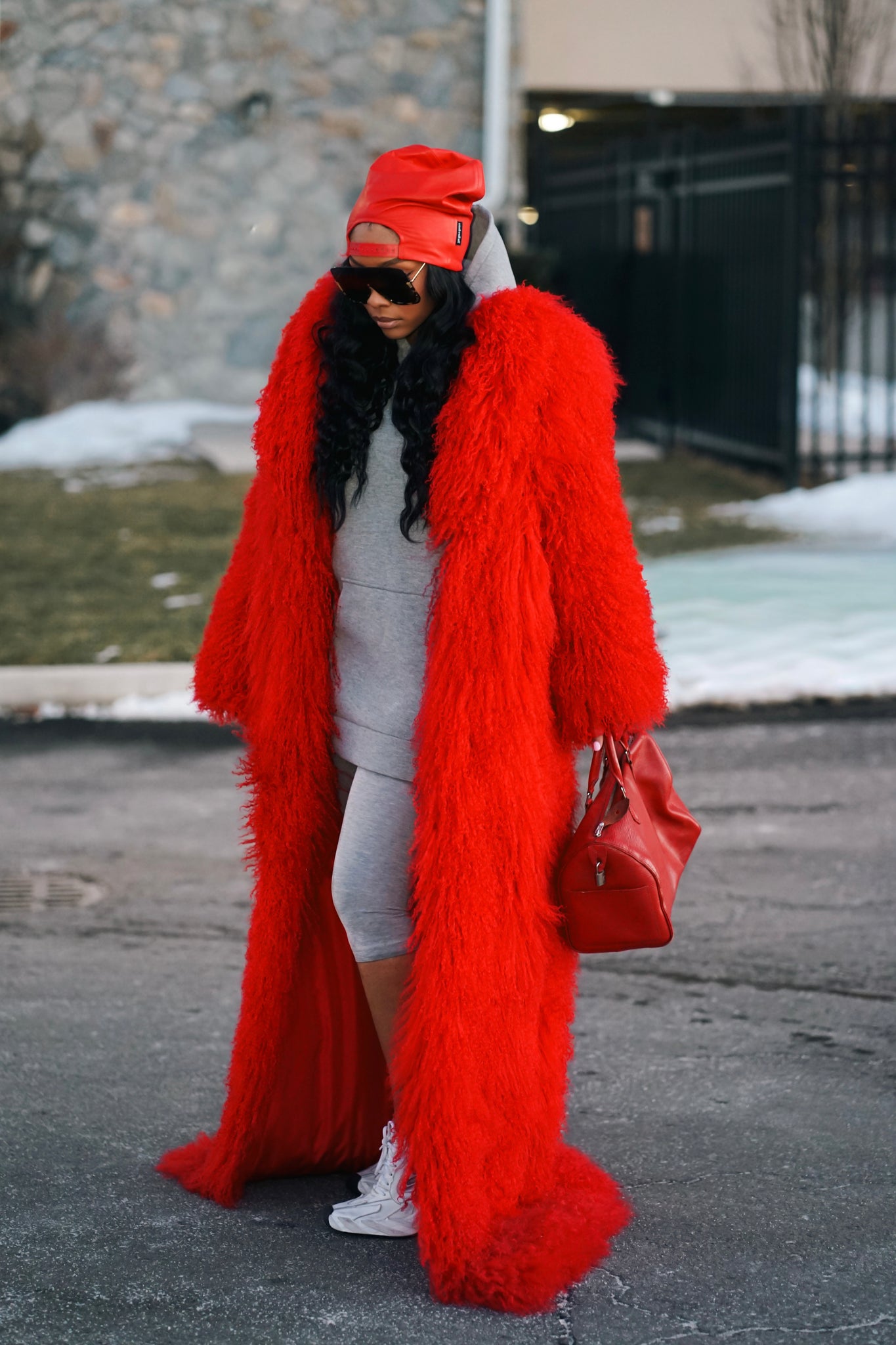 Exaggerated Floor Length 100% Real Mongolian Fur with Collar. Size up or down according to your style look. 59inches Long